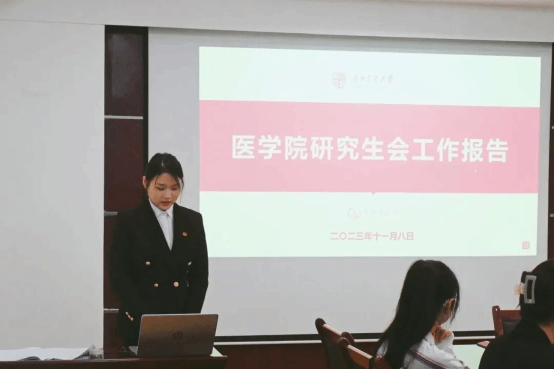 随后,第五届研究生会主席杨雨婷代表研究生会向大会作工作报告,从持续深化改革、践行服务宗旨、勇担时代责任三方面对上一届研究生会工作做了深刻的分析与总结。期望万象城娱乐allwincity体育研会未来继续努力,以经得起检验和全心全意为同学们服务的工作初心,赢得同学们的信赖,彰显组织价值。